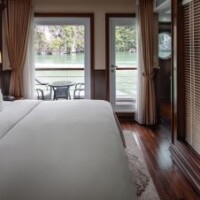 The Executive Balcony has all the amenities and features of the Deluxe Balcony Cabin, its location on the upper deck of Paradise Elegance means breathtaking, unobstructed views of Ha Long Bay. After a day filled with activities and excursions, guests can retire to the tranquility of their cabins and enjoy the smart TV and room service, and then watch the sunset over this timeless landscape.