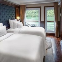 Located on the upper deck of Paradise Elegance at the rear of the boat, Elegance Balcony Suite is perfectly positioned for privacy. Roomy and comfortable, and with all the features and amenities of the Balcony Cabin, the Balcony Suite offers stunning views of Halong Bay