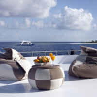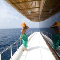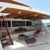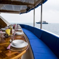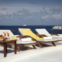 The communal open-air spaces are on three decks furnished with sun loungers, sun mats and deck chairs. The decks allow guests to enjoy the breathtaking Maldivian scenery, both when sailing and while relaxing when the yacht is moored in the lagoons for the night.