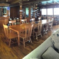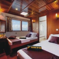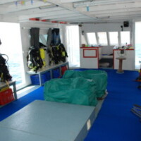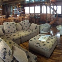 The indoor saloon has a bar offering a wide choice of soft drinks and spirits, a TV-DVD-Stereo area furnished with comfortable sofas . All yacht furniture is made of valuable Maldivian wood. Recharging area for cameras 220v electricity.