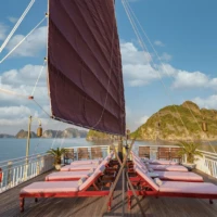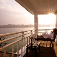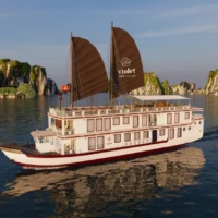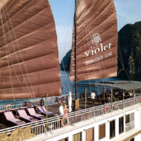 iolet is Heritage Line’s most coquettish French-Indochinese designed luxury vessel. Gleaming wooden floorings, opulent silks, and velvets, selected artifacts and ornaments are distinct appearances of this small Art-Deco ship. Being ‘one-of-a-kind’ sailing the Halong Bay in the Gulf of Tonkin, she grants the highest level of privacy to its residents.