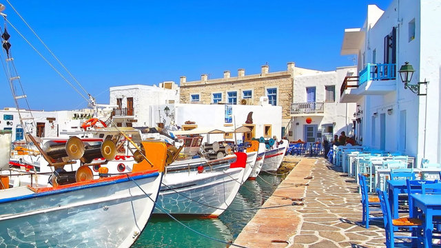 Historical monuments include most significant early church in the Aegean, the awe-inspiring Panagia Ekatontapiliani (Church of 100 Doors). Or you could climb to the Venetian castle at the port and visit the Byzantine Road at Lefkes.