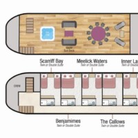 Shannon Princess, accommodating 10 guests in comfort, is the largest hotel barge to be cruising the River Shannon and its picturesque, intertwining lakes. Her thoughtfully-designed interior includes a comfortable saloon and dining area with panoramic windows. The five junior twin/double staterooms, also with picture windows, are stylishly furnished and each is air-conditioned, centrally heated, and accompanied by a modern en suite shower room.