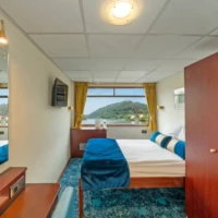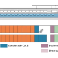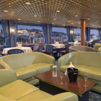 The decoration is refined and its atmosphere, both elegant and friendly, is in perfect harmony with its environment. The restaurant, located on the upper deck, offers a delicate cuisine in a refined setting. Large windows allow you to fully enjoy the panorama. On this same level is also the lounge / bar with a dance floor, while on the sun deck, an ideal place to relax and admire the landscapes, passengers can enjoy comfortable sun loungers, as well as a large shaded area.