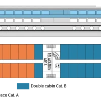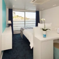 The upper and middle deck cabins have French balconies. These decks share four suites. Two suites on the upper deck come with sun loungers. The large windows on the main deck provide great views from the privacy of your cabin. All meals during the cruise are served in the cozy dining room on the main deck. All onboard fun,