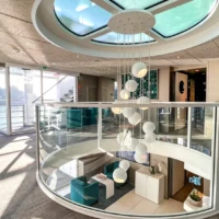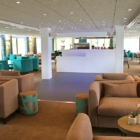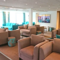 music, and dancing happen in the lounge and bar on the middle deck bow. An outdoor area is found near the bow. The sun deck has a pool for cooling off and sun