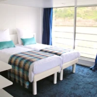 Named after the famous Portuguese navigator, Gil Eanes is a Premium three-deck ship specially designed for the river Douro in Portugal. Launched in 2015, this elegant-designed ship with a bright, modern feel has ample space throughout for passenger comfort with splendid panoramic windows. Its elegant taupe, bronze, and white interior tones combine perfectly with the blue shades and these conjure up the Portuguese tile designs and colours.