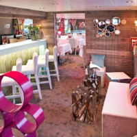 members guarantee a personalized service. The decoration is stylish with an elegant and intimate atmosphere. Located on the upper deck are the restaurant, which offers delicate cuisine in a refined setting, the lounge bar and a relaxation area with a