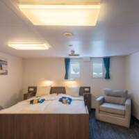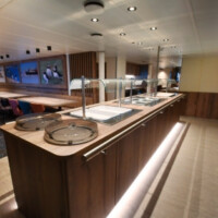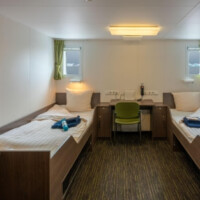 The vessel has the highest ice-class notation (UL1, equivalent to 1A) and is therefore suitable to navigate in solid one-year sea ice as well as loose multi-year pack ice. Ortelius can accommodate up to 108 passengers and has an abundance of open-deck spaces. It is manned by 24 highly experienced nautical crew members, 20 hotel staff, eight expedition specialists (one expedition leader, one assistant, and six lecturer-guides), and one doctor.