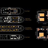 Includes lobby, dining room, and crew quarters.