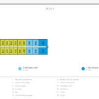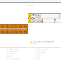 | Cabins | 89 outside cabins, 4 junior suites, 2 balcony suites |