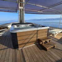 - Jacuzzi and sun loungers on the top deck