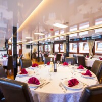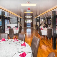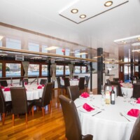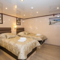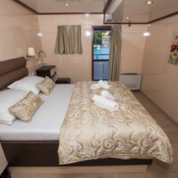 Passenger cabins are situated on two decks; the Lower and Main deck. Crew members are accommodated in separate quarters. All guest – cabins are fully air-conditioned and conveniently designed with modern private ensuites. The cabins are equipped with queen-size and twin beds of which two cabins have an additional bed at their disposal. Each cabin also has a cupboard, cabinet, window or porthole, and a private ensuite.