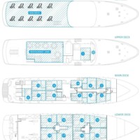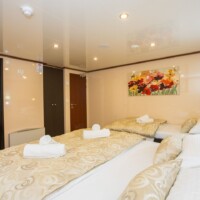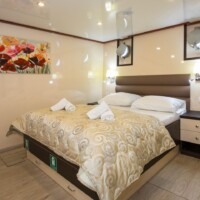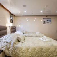 5 double cabins – queen size bed (165 x 200cm) + additional lower bed (90 x 200cm)