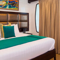 This luxury-class, 16-passenger boat offers the travelers a choice of eight-, five-and four-day cruises through the archipelago. The itineraries include snorkeling, kayaking and hiking. After the day’s excursions, relax in the library viewing a movie from the DVD collection, or on the sundeck while enjoying a drink from one of the catamaran’s two bars. You’ll rest well in one of the nine pleasant cabins, eight of which have private balconies. All are equipped with private bathrooms, cold/hot water, air conditioning, safe box and other amenities. Throughout, the Alia is elegantly and tastefully decorated.