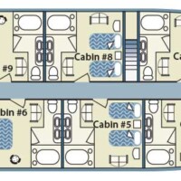 | Accommodation: | 16 passengers in 6 twin bed cabins on main deck and and 2 suits on upper deck |
