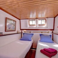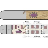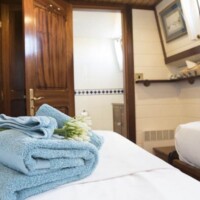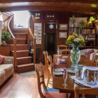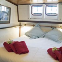 Her intimate saloon is the perfect place to relax on a comfortable sofa with a good book, or to sip an aperitif before enjoying another gourmet meal at the elegant dining table. The barge is air-conditioned throughout and the five bright staterooms, each with a modern en suite shower room, offer all modern comforts and can be in either twin or queen-size double bed configuration.