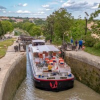 Athos was originally built as a commercial sand, grain and wine barge and converted into a luxury hotel barge in 1982. Her association with wine continues today as she gracefully meanders along the Canal du Midi, through the Languedoc-Roussillon region of France.