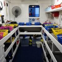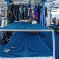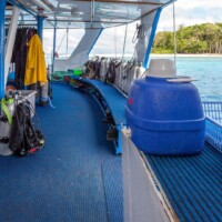 MV Bilikiki has 10 deluxe cabins, eight with a double bed and single bunk and two with twin single beds and no bunk (cabins #1 & 2). All cabins are air conditioned and have their own en-suite. There is a large sundeck, comfortable lounge and camera area and spacious dive deck. Her large size and a hull that was built for South Pacific seas are two main reasons why guests from around the world still say that “the Bilikiki” is one of the most spacious and comfortable vessels that they have travelled on.