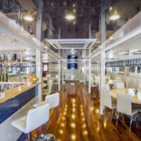There is a corner table for buffet breakfast, wireless internet (Wi-Fi) is free of charge for all clients, loud-speakers, audio-system, and microphone for notifications through entire boat or just restaurant area and beautiful large windows for complete passenger’s satisfaction.