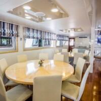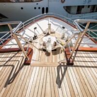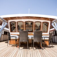 Separate sitting area with couch and table is inside restaurant as well, while outside terrace has more than 70 m2 with sitting area, tables and chairs that is fully covered of course also large enough for all passengers to have breakfast outside or just do nothing and enjoy. This area can be closed with removable plastic windows (in case of winds) but most of the time is open for a breathtaking “sea view”.