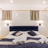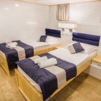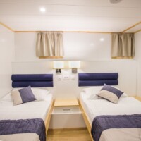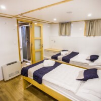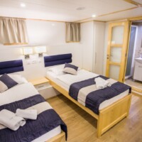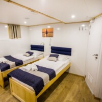 10 cabins are with double or twin beds, and in one of them have third bed (200 x 80 cm) on the floor with size of 13-15 m2.