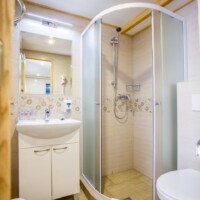 Cabins are made under new standards, each cabin has independent air-condition, central ventilation system, Satellite TV, Safe deposit box, smoke and fire alarm, internal radio system (also for announcements from captain or tour leader), lifejackets, cupboard, cabinet, small table with chair and porthole or window. Luggage space is under the bed. Bathrooms are equipped with toilette, shower, washbasin, hairdryer and cosmetic package.
