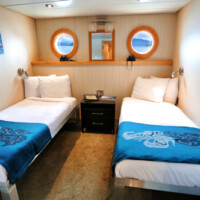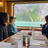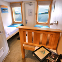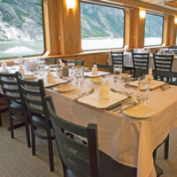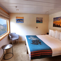 This sleek vessel was thoughtfully renovated in our company shipyard. The ship features expansive viewing areas on the bow and aft promenade decks, new carpets and furnishings in public spaces and staterooms, and a hull design optimized for supreme comfort in Alaskan waters, regardless of weather. In the lounge, forward facing windows extend from the deck to the ceiling, offering panoramic views off the bow