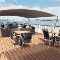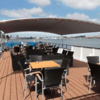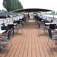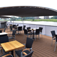 De Holland has a large salon with large panoramic windows on the upper deck that combines the restaurant, bar and a lounge area. Wi-Fi is available. On the partially roofed sun deck, chairs and sun loungers invite for a stay. Here you can relax and have a drink and enjoy the scenery while sailing. Bicycles will be stored on a separate part of the sun deck.