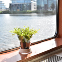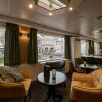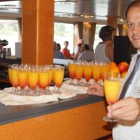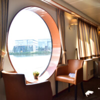 In the salon / bar with large panoramic windows on the upper deck, you can review the day’s experiences in a pleasant way while enjoying a beer or a glass of wine. Your physical well-being is taken care of in the tastefully furnished and air-conditioned restaurant on the lower deck. The spacious and partly covered sundeck offers space to let the landscape pass comfortably in a deck chair. The bicycles are stored on the rear part of the sun deck.