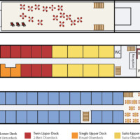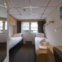 Lower deck: There are 25 twin cabins with two separate single beds and a large window with an upper hinged window that can be opened for ventilation.