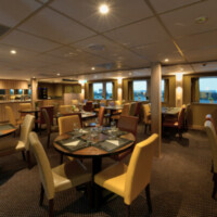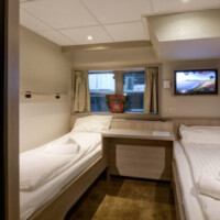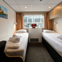 All cabins are ‘outside cabins’ that are equipped with two single beds, TV, mini safe and individually controlled air conditioning. Each cabin has a bathroom with shower, toilet and hairdryer.
