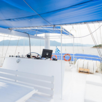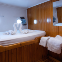 He is able to accommodate up to 25 people on board offering double and triple en suite fully air conditioned cabins, in order to make sure that you will enjoy the perfect cruise with us!