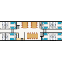 The Gandalf has ten twin cabins (10 m² – 108 sq.ft.) with two separate beds. In two of the cabins a bunk bed as third bed is possible (on request). Each cabin has a recently renovated bathroom with shower, toilet and basin. Windows can be opened and the cabins have ventilation and central heating. A hair dryer is available on request.