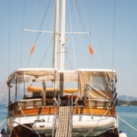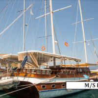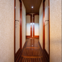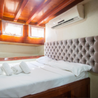 With its 28m hull and its 9 en suite cabins, it can accommodate up to 18 people!The cabin allocation itself, consists only out of Double-bed cabins which include their own individual bathroom, a shower, an hairdryer, reading lights, an electric fan attached to the wall and an independent A/C device!