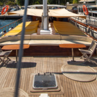 Gulet Hemera offers a spacious outdoor dining area on the back, with a built-in couch, for you to enjoy your meals on, or for you to just lay back and relax!