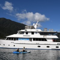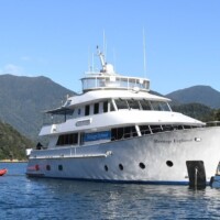 Heritage Explorer is a 30-metre, 4-deck New Zealand flagged vessel built in 2004 by the renowned wooden boat building family Carey’s Boatyard in Picton. It features a contemporary wood-finished interior, 10 well-appointed cabins across three decks, dining room boasting spectacular 180-degree panoramas and theatre capabilities; lounge and bar featuring a flight of inclusive regional New Zealand wines and beers; and a well-stocked local library.