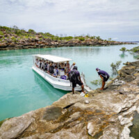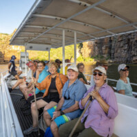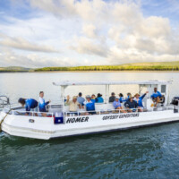 Our 12m expedition vessel “Homer” truly sets our expedition apart from other cruise vessels. “Homer” is able to travel up the smaller creeks and tributaries as she carries all 20 guests in comfort and safety, whilst two quiet motors will ensure you don’t miss a word of the naturalist tour.  “Homer” has comfortable seating and lots of shade cover, ideal for the hot Kimberley sun. “Homer” also boasts an easy access ramp and stairs for landings and on-board toilet and water facilities.