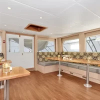 There is plenty of space on deck for wildlife watching with 2 zodiacs for daily shore excursions and 5 stable sea kayaks for guests to use whenever the vessel is at anchor.