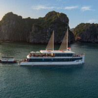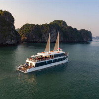 Our sailboat, JadeSails, is a unique and exclusive vessel designed to offer a luxurious open space and seamlessly blend with the natural beauty of Halong Bay. It features elegant and modern interiors such as two restaurants, a lounge bar, a cafe, a sundeck, a swimming bar, a spa, and a gym.