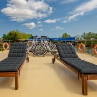 She has two upper deck junior suites and eight lower deck staterooms, all air-conditioned and with en suite facilities, Head to the sun deck and you’ll be greeted by an extensive seating area with a large canopy, comfortable sun loungers and a relaxing spa pool.