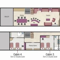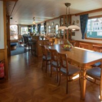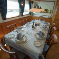 The spacious, air-conditioned saloon with its attractive cocktail bar, piano, and elegant furnishings provides a truly sophisticated setting, while other amenities include an exercise room and an elevator.
