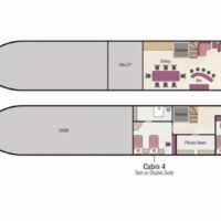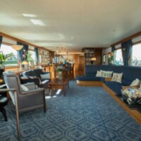 Each of the four generous 200 sq ft cabin suites is lavishly equipped and the en suite bathrooms feature double hand basins and oversized showers. On deck there is a large sun deck with comfortable loungers and a spa pool, as well as bicycles for you to pedal along the nearby towpath.