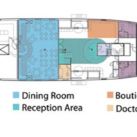 | Decks: | (Sun deck, Cabin deck, Main deck) Three public decks include an ample bar-salon, dining room, natural history library, sky bar and sundeck. |