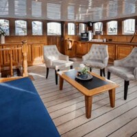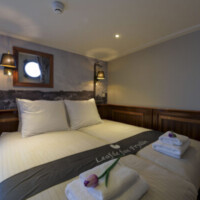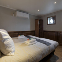 On the upper deck there are 4 magnificent suites (18 m² – 193 sq.ft.) with two separate beds, set next to each other as a hotel style bed (200 x 160 cm – 78 x 62 inches), a cozy sitting area, a TV, a double glass door and small private balcony.