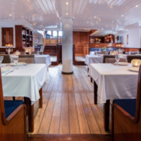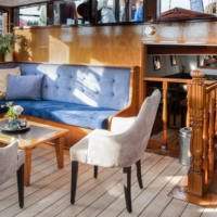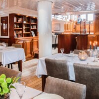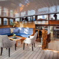 On the lower deck you will find the air-conditioned restaurant in nautical style, where the carefully prepared sumptuous meals are served. In the wheelhouse on the upper deck, the Leafde fan Fryslân offers a cosy lounge which is equipped with large panoramic windows, a well-appointed seating area , TV and a well equipped bar. Wi-Fi is available. The best views over the water are available here and on the deck, where you can also have a seat when the weather is nice.