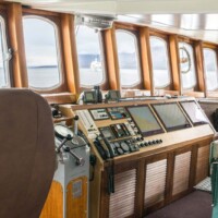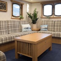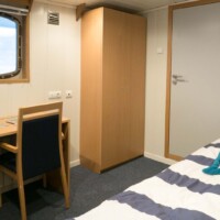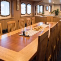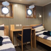The ship accommodates a maximum of 12 passengers in eight outside cabins, all equipped with en-suite facilities. On the lower deck, there are four twin cabins with portholes. The main deck features two larger twin cabins with windows and one superior cabin with a double bed and windows. Additionally, there is a large superior cabin with windows on the upper deck. Meals including breakfast, lunch, and dinner are served in the dining area located on the main deck. The ship also has a lounge area where you can relax with a cup of tea or coffee and attend talks given by the guides. An international crew welcomes passengers, and the bridge is accessible to visitors.