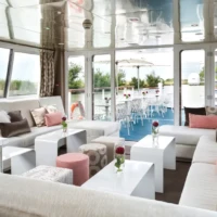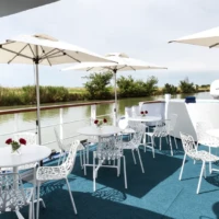 The MS Anne-Marie is a beautiful Premium canal barge, measuring 38,50 meters long and 5,07 meters wide. It can accommodate 22 passengers, in 11 cabins spread over two decks. The size of the cabins is 9 m2 (including a PRM cabin of 11 m2) offering amenities and providing guests with all the comforts they need during their stay. On board, everything has been taken care of down to the smallest detail and the 6 crew members guarantee a personalized service. The decoration is stylish with an elegant and intimate atmosphere. Located on the upper deck are the restaurant, which offers delicate cuisine in a refined setting, the lounge bar and a relaxation area with a jacuzzi. Comfortable sun loungers are provided on the sun