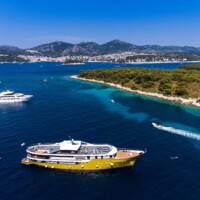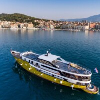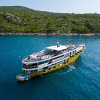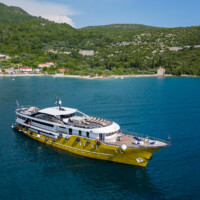 Launched in 2017, the MS Arca is a modern vessel designed for cruising along Croatian coast. The ship’s distinctive yellow hull makes it easily recognizable, ensuring it stands out wherever it sails. With 19 spacious cabins spread across two decks, each equipped with essential amenities like air conditioning, comfortable bedding, and private bathrooms, passenger comfort is a top priority.