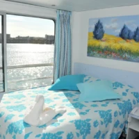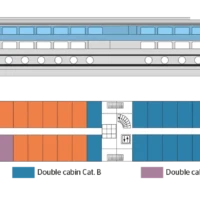 The upper deck cabins have wide windows with French balconies, the ones on the middle deck have large windows and on the main deck the cabins have portholes.
